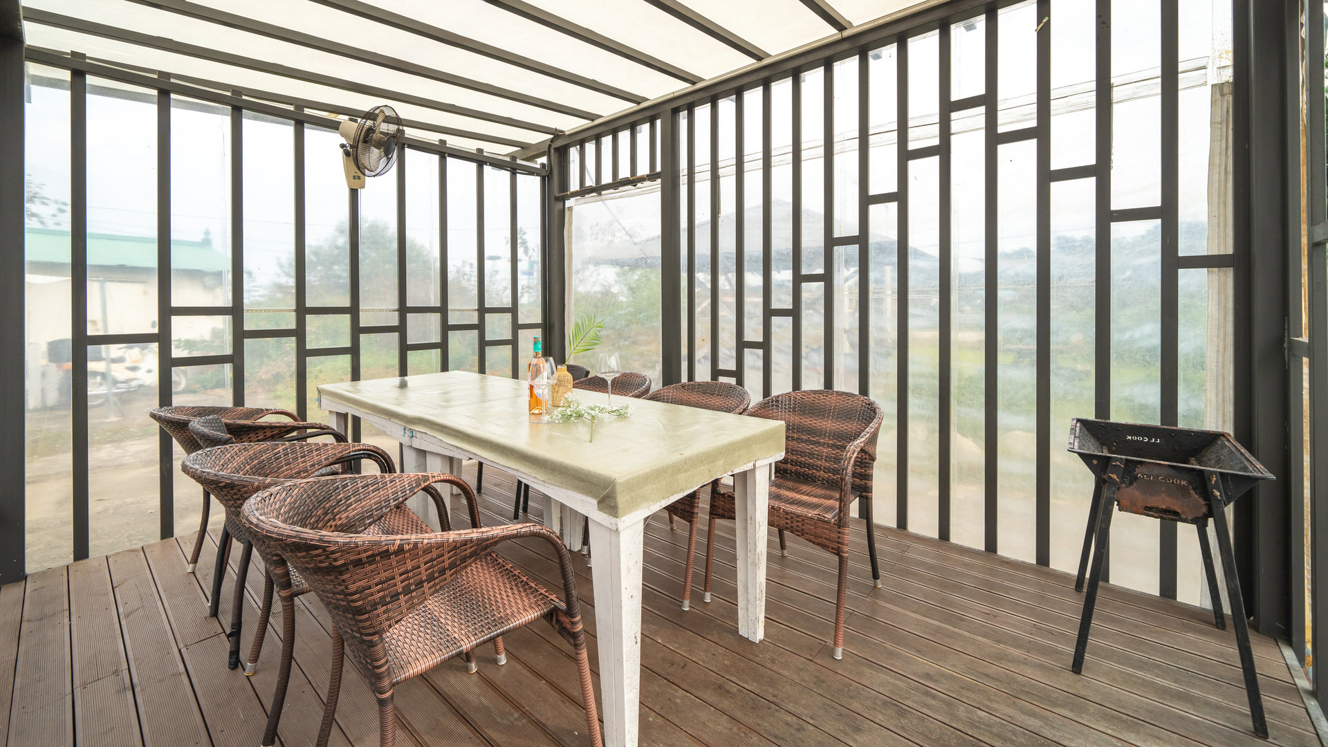 - 집기품목 : 욕실용품, 남녀공용, TV, 금연, 냉장고, 에어컨, 전기밥솥, 취사시설/도구, 개별바비큐, 전자레인지, 커피포트, 세면도구, 무선인터넷